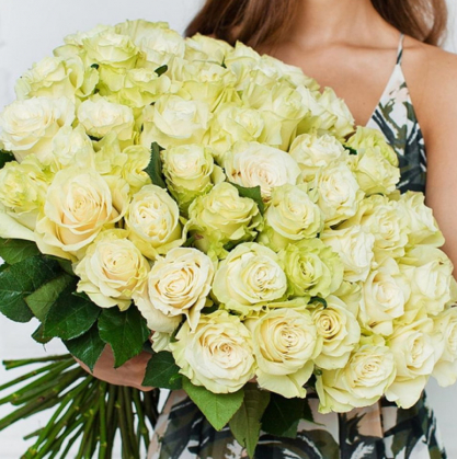 Белые розы сорта Mondial. Возможен выбо растовки: 50, 60, 70см.